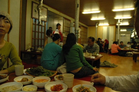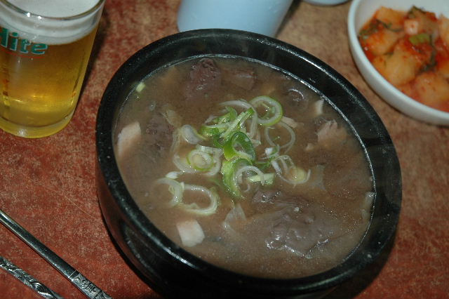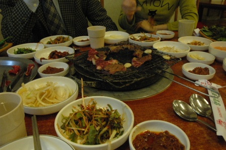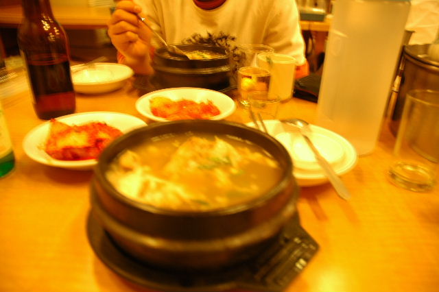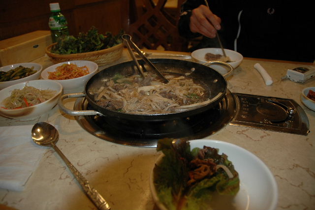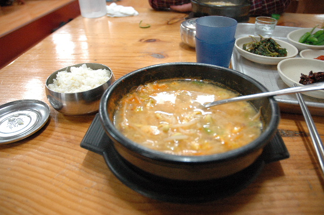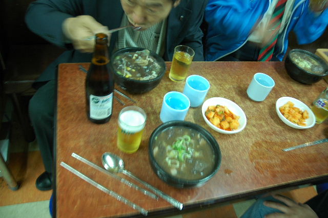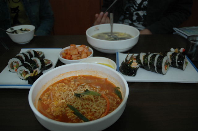 | 蔚山キンパップ、ラーメン、トッマンドウクッ(餅、餃子入りスープ) | 慶州にて、プルコギ | ソウル東大門にてサンゲタン |
