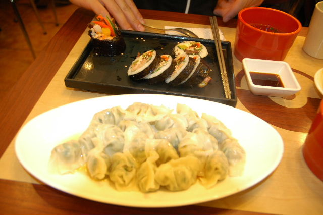 | 大韓航空機内食 | ソウル高麗亭にて韓定食 | ソウル明洞にてキムパップ(海苔巻)、水餃子 |