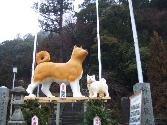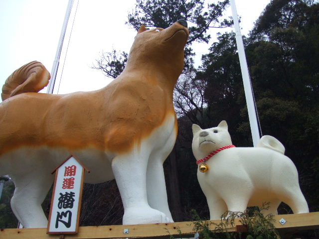 地元の方たちにより製作された見事な親子犬が、奉納されています。