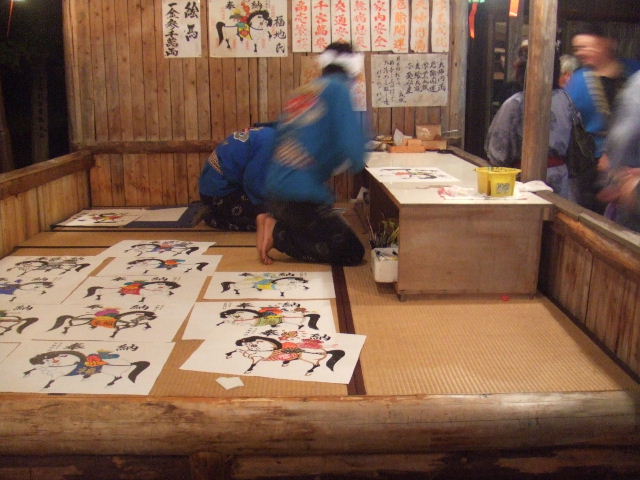 | 夜はお祭り広場で、福地温泉の旅館の人たちが伝統の獅子舞(へんべとり)を披露 | 絵馬も売られ、その場で祈祷してもらいます。 |