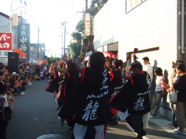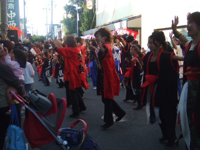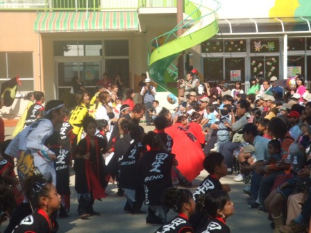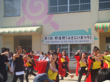 幼稚園グランドでは、よさこいまつり。