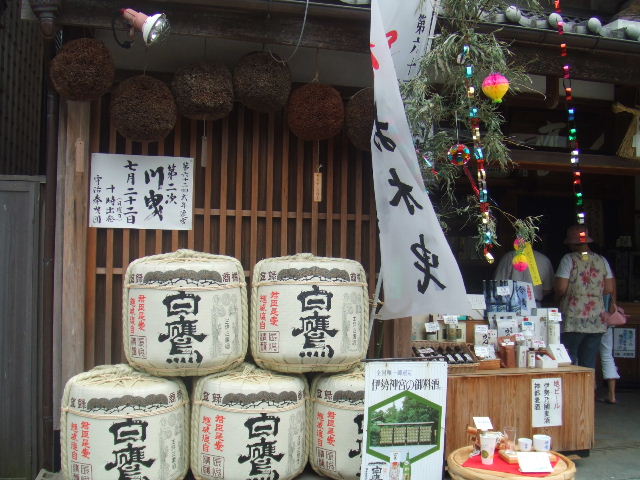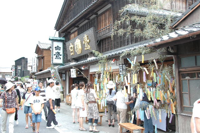 内宮参拝後、おはらい町、おかげ横丁を散策です。この日のおはらい町は、七夕飾りで、彩られていました。 |