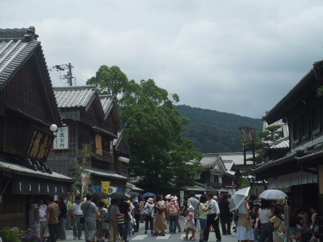 伊勢神宮参道・木が多いので初夏の日差しも和らぎます。 |