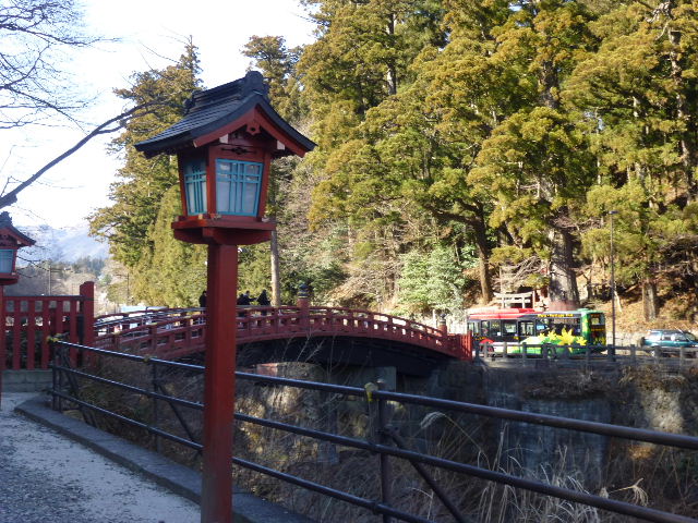 日光山内入り口の神橋。 保存の為か対岸へは渡れません。 |