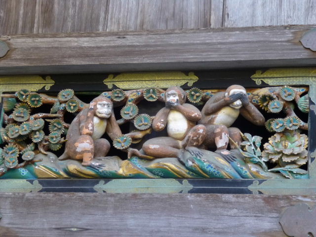 神厩舎には、見ざる、言わざる、聞かざるで有名な3猿の彫刻。