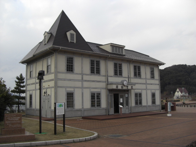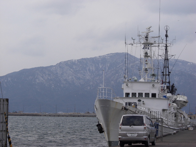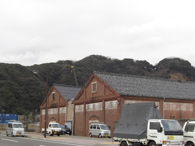 | 港近くの赤レンガ倉庫 | 旧敦賀港駅もレトロな雰囲気です。 | 敦賀半島はうっすら雪景色です。 |