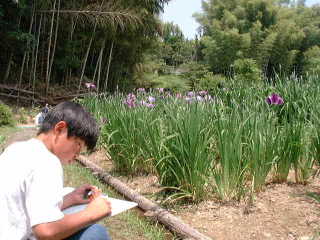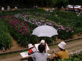 | 100種類2万株の花菖蒲 各花につけられた名前を見ながら、散策する。 | ||