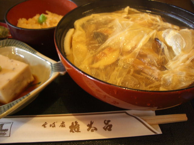 湯葉がたっぷりかかったうどんの定食に満足。 |