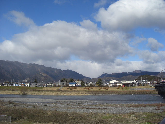 強風の中、山を見ながら進みます。 |