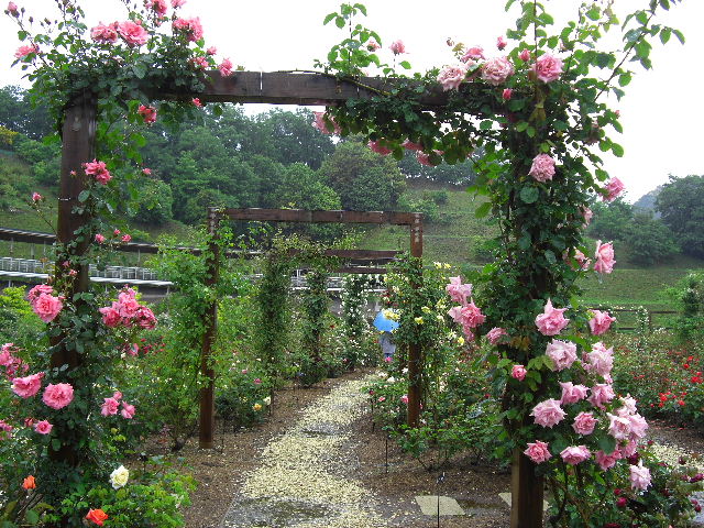 バラのアーチが続き、様々な色合いのバラが咲くステキな公園で す。 |