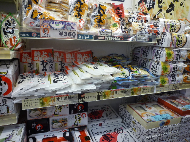 ずらりと売店に並んだ 香川名物讃岐うどん。 お土産に迷います。 |