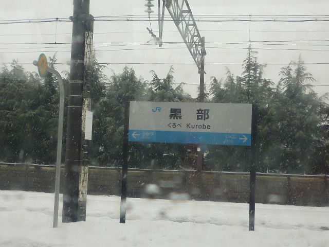 | 直江津からは荒れた海の日本海を見ながら、北陸本線を走ります。 | |