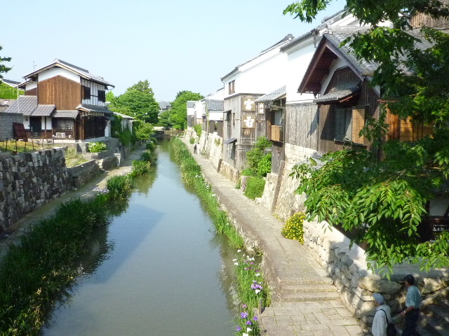 八幡掘は、運河として、利用されていたようです。 岸に、白壁のりっぱな蔵が並びます。