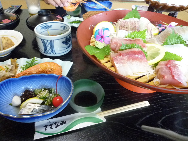 今日は、志摩市で用をすませ、 以前寄った 南勢町(現在は南伊勢町)旅館さざなみで、食事をします。