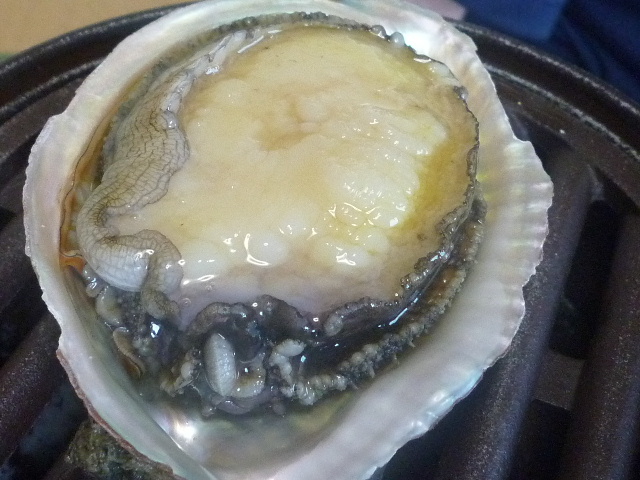 | 今回も急に電話でお願いしましたが、気持ちよく料理を準備してくれました。 | アワビも、黒鮑、白鮑がテーブルに並びました。 |