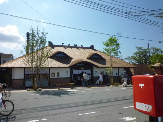 | 13時和歌山港着。ここから津まで2時間30分で帰れるのですが、 たま駅長で有名な、和歌山鉄道 貴志駅に立ち寄りました。 駅舎は檜皮造り、なんとネコの顔のようです。 つい最近、新駅舎が完成したようですが、喫茶室から売店まで、 たま駅長づくしです。 たま駅長は、すやすやとガラス越しの部屋で、寝ていました。 |