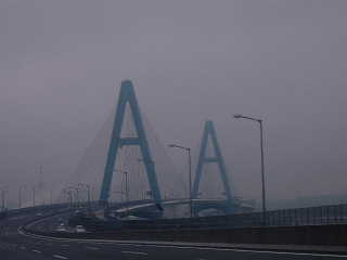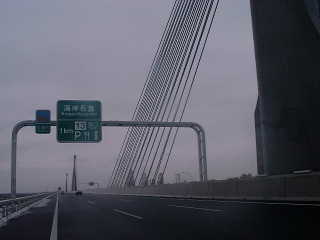 伊勢湾岸道路 2003/2/16 雨の日のドライブ 伊勢湾岸道路 14年3月開通した川越ICから東海ICまで あいにくのお天気でしたが、いくつかの巨大な橋をわたり名古屋港に停泊している大型船を眼下にながめての爽快なドライブでした。 この巨大プロジェクトの説明は、長島のPAに橋梁の新技術、新工法の模型展示場がありますのでそこで休憩しがてら、見学。 驚いたのはトイレの設備。新しくきれいなのはもちろん、当然ながらバリアフリー、ベビー用の設備、手洗いもお湯がでて等・快適な施設。外には足湯もあり、さすが温泉地です。残念なのは、利用者が、日曜日にもかかわらず、まばらなこと。 そういえば、この区間交通量が少ないのは、通行料が高い(?)割にメリットが少ないような?15年3月に東名阪四日市ICまで開通すれば、利用者が増加することでしょう。