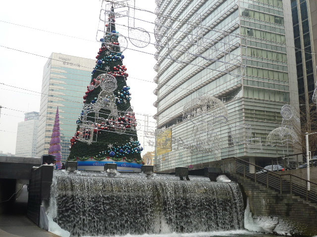 翌日は、日本人客ばかり10名程でソウル市内のバス観光です。 人工の川の流れる公園を散策。