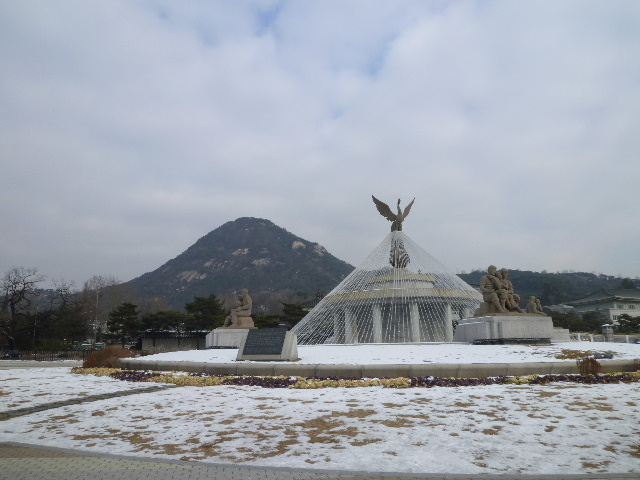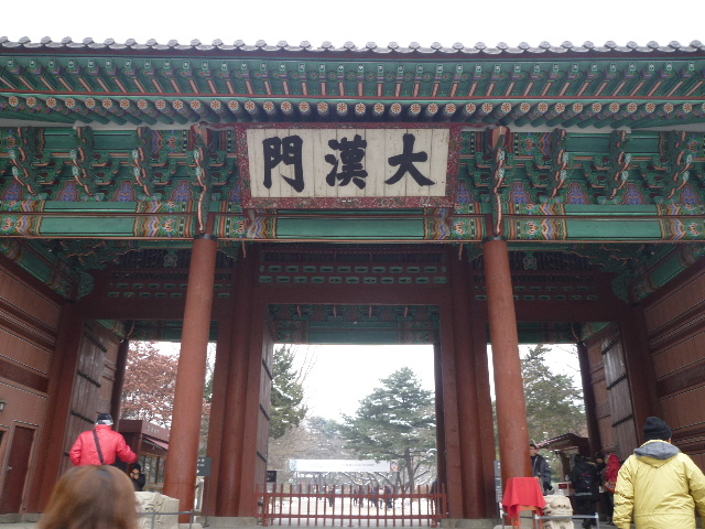 次に立ち寄ったのは、徳寿宮。 雪景色に、色鮮やかな宮殿がとても映えます。 |