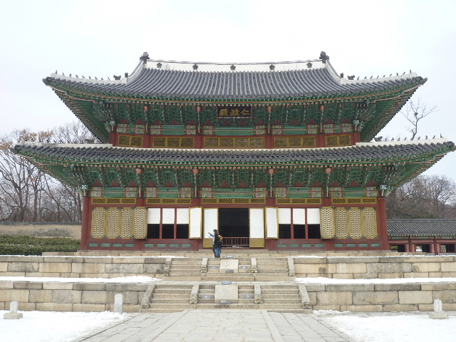 世界遺産・昌徳宮を見学します。 広大な敷地に沢山の建物が建っています。 |