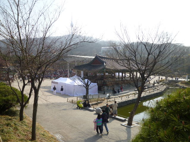 | 今日はkさんが私たちの観光案内をしてくれます。 朝食後はジャンボタクシーで、「チャングムの誓いテーマーパーク 」に向 います。 テーマーパークはソウルから1時間の静かな郊外にありました。