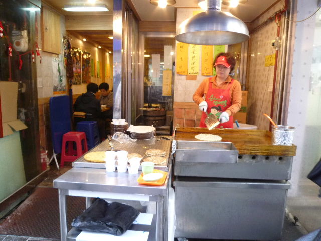 AM7時、ホテルロビーに集合し、タクシーで、朝食場所に行きます。