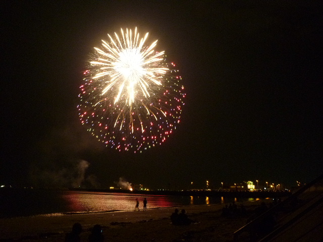 子供たちと、弁当を持って花火見学に来ていた頃は、夜店で賑やかなヨットハーバーでの見学でしたが、