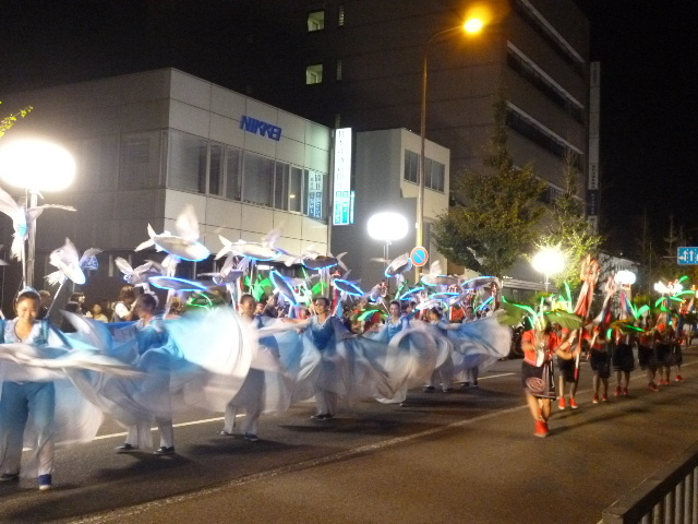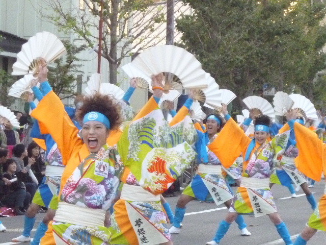よさこいは、地元チームはもとより、県外の有名チームや台湾のチームも参加します。