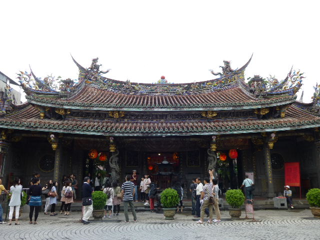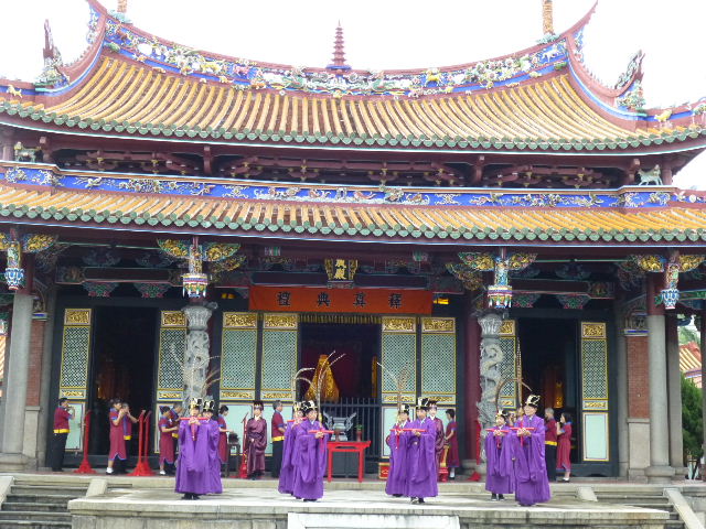 続いて、学問の祖「孔子」を祀った台北孔子廟を見学します。 本殿の前では、踊りと楽器演奏が奉納されていました。 |