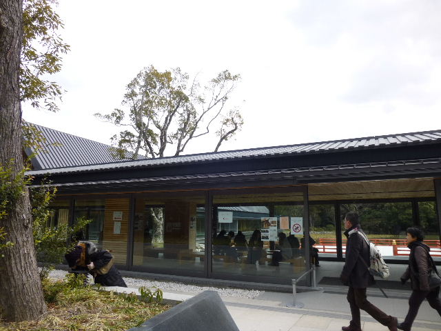 まがたま池のほとりに、せんぐう館と休憩室が建てられています。