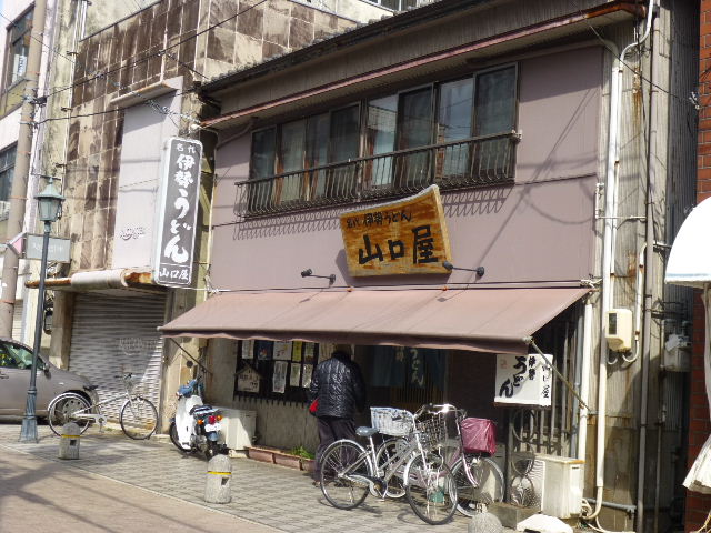 外宮前は、新しいお店も建ち、遷宮に向けて活気づいていました。 お昼は、山口屋で、伊勢うどんを食べました。 ガイドブックを手にした観光客で満員です。