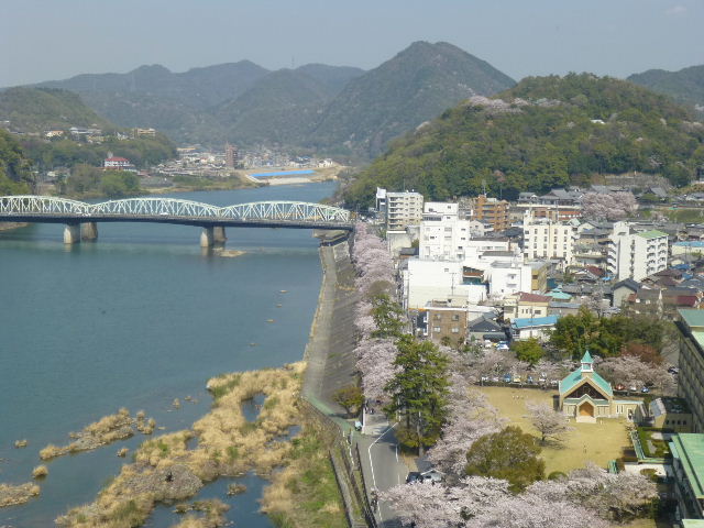 急な階段を登ると、眼下に木曽川の流れが見えます。