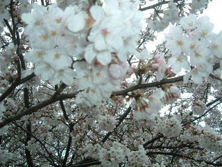 ソメイヨシノだろうが、ピンクの濃い花をつけている。