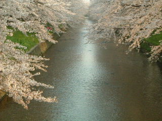 川の両岸に27kmの桜並木が続く。