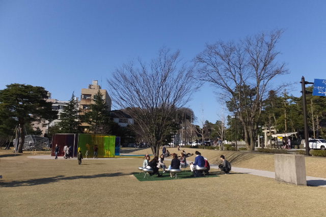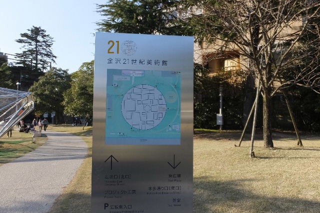 近頃、雑誌によく登場する、21世紀美術館に立ち寄りました。広大な敷地に、ガラス張りの建物やモニュメントがあります。