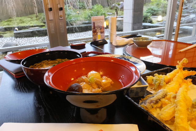 大手門前にある、KKRホテルの中のお食事所で、 庭園を見ながら、夕食をいただきます。