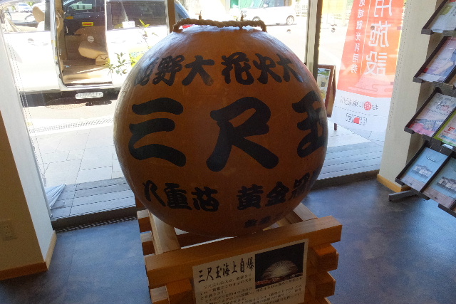 レストハウスには、8月に開催される熊野大花火大会の3尺玉が展示され ていました。 |