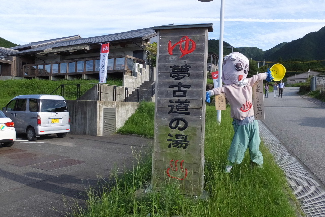 海洋深層水の夢古道の湯で、休憩。 目の前の山には、熊野古道伊勢路、紀北町〜尾鷲市の馬越峠道が、通り ます。