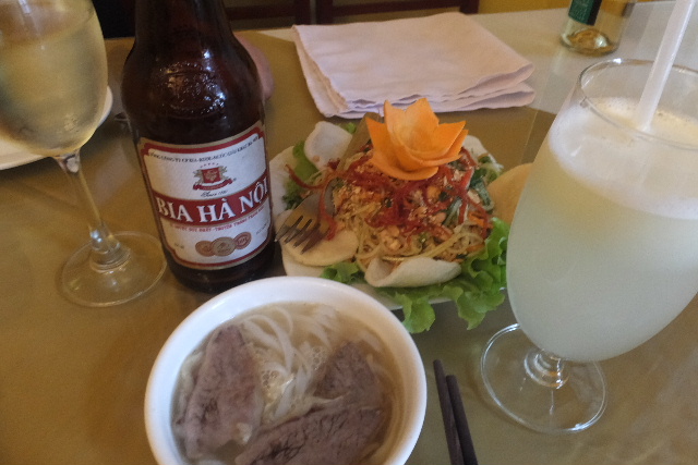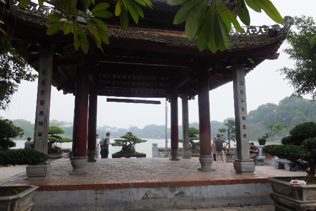ホアンキエム湖にある玉山祠で、伝説の大亀を見学。その後は、町のレストランでベトナム料理の昼食です。