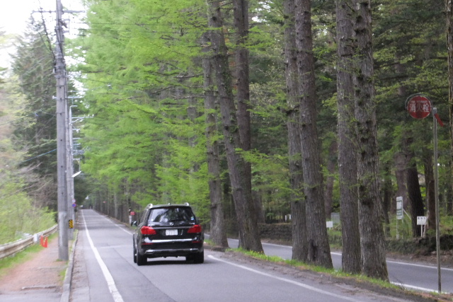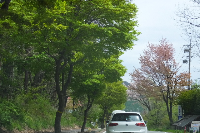 道沿いには、新緑の木々に混じり、時々桜も見かけます。