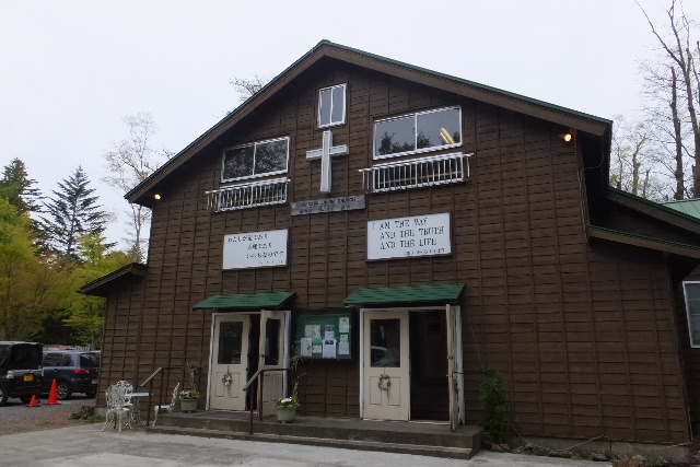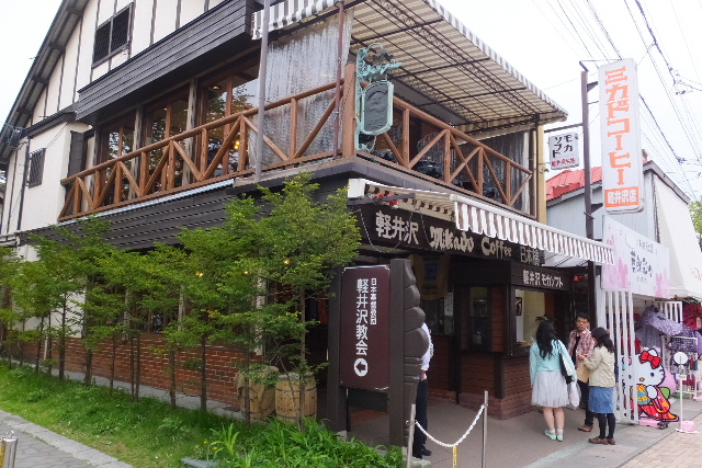 まずは、ミカドコーヒーで休憩して長時間ドライブの疲れを取ります。隣は軽井沢教会。