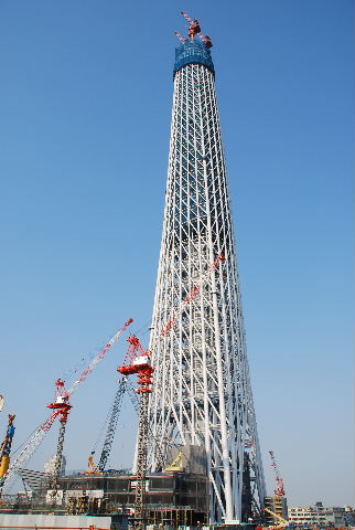 建設中のスカイツリー 大勢の見学者が、スカイツリーを見上げています。 現在、東京タワーを抜かしたようです。 |