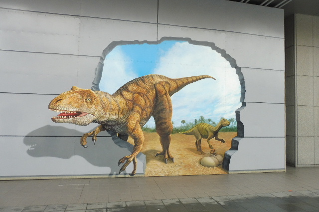 駅前には、恐竜のモニュメントがたくさん。福井は恐竜化石が多く発掘されていて、恐竜王国福井と観光に力を入れているようです。