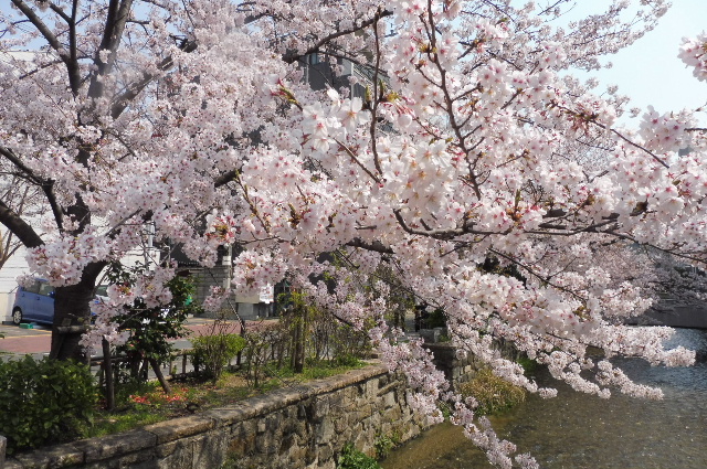 南座へ向かう途中の白川沿いの桜も満開。