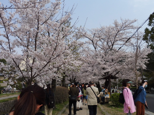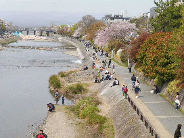 賀茂川を三条まで散歩。大勢の人が川沿いの春を楽しんでいます。