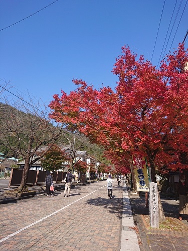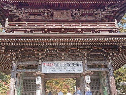 紅葉に覆われた参道を10分程歩き、華厳寺の仁王門に到着。